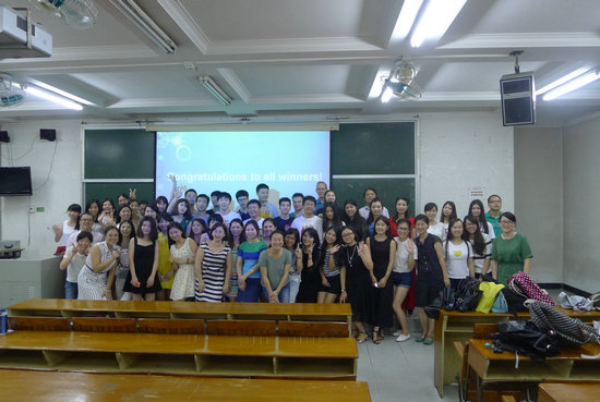本网讯 6月11日下午,专用外语培训部第九届“魅力之声”英语电影配音大赛在本部二教114课室举行。主任吴文权、外教Mark、Ron及专职老师黄艳担任大赛的评委。全体老师及B、C类全体学员参加了活动。